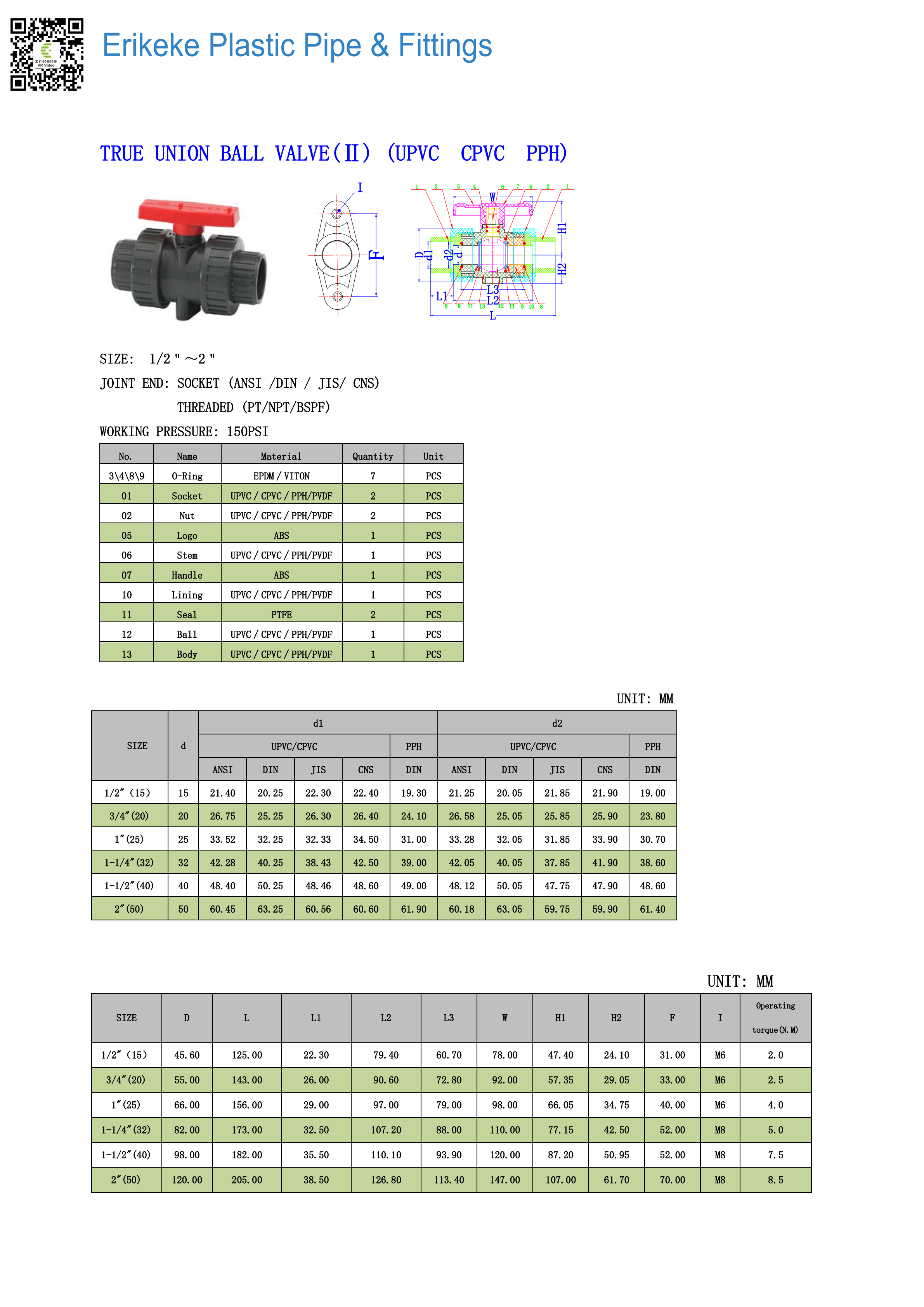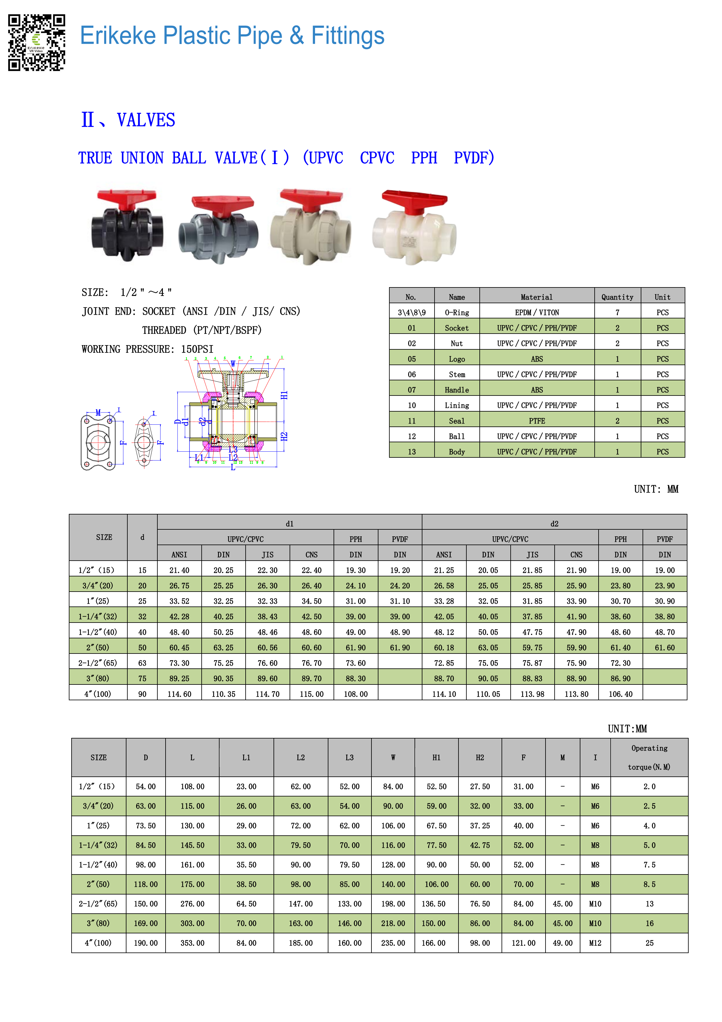 Factory Provide Regulating PVC Threaded Double True Union Ball Valve